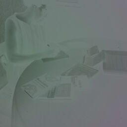 Gwendolyn Brooks writing, surrounded by her written work, July 20, 1961 (negative cut) |