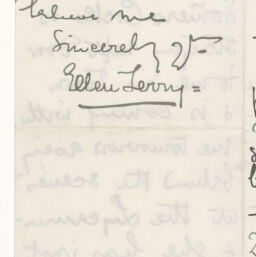 | Description | One letter and accompanying envelope from English actress Ellen Terry to Helen Allingham, writing she and "Edy," are staying in Godalming for some rest and fresh air. Terry expresses her delight at Helen's attending the May 4th show of "Beckett," with her eldest son. Terry also mentions Blanche Somers Cocks is staying next door to her at the moment. The corresponding envelope is addressed to Mrs. W. Allingham in Hampstead. The envelope is postmarked May, 1893. The backside of the envelope contains a note from Terry, stating "no answer," and signed with Terry's initials “E.T. |