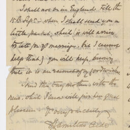 | Description | One letter from Charles Aide to William Allingham telling Allingham that he has recieved his news. He then proceeds to compliment Miss Patterson (Helen Allingham) calling her a clever young lady. |