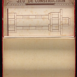 | Game Instructions | Instructions of the game in French, English, and Spanish on sheet affixed to inside of box lid, with titles: 'Les dominos équilibristes', 'Equilibrating dominos', and 'Dominós á equilibrar.' |