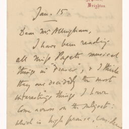 | Title | Letter from Edmund Gurney to William Allingham, January 15, unknown year |