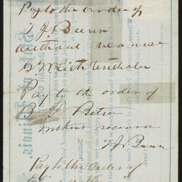 | Description | A three hundred dollar bond note from the McLean County Court issued to G.W. Lichtenthaler. The money "is to be used to pay bounty to volunteers" of the Civil War. |