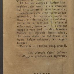 | Alternative Title | Risposta del chirurgo maggiore Carl'Antonio Calori |