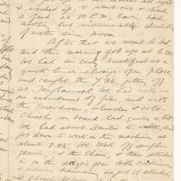 | Description | One letter from Henry Allingham to his mother Helen Allingham, two weeks since his last letter, writing last Saturday was the American Boat Race between Harvard and Cornell. Henry was invited to watch the race with Mr. Allen, editor of the Trumansburg "Sentinel." He mentions taking several people for rides on the Buckboard around Trumansburg. Henry describes getting caught in a rainstorm with the Buckboard, and an issue with the engine making it unable to return to Trumansburg. He also mentions how poor the condition of American roads are when there is rain. In a postscript, Henry writes about taking a drive with Edna. He also mentions a picnic being planned by Charlie for Madeleine's birthday. He mentions Madeleine taking the entrance exams for Bryn Mawr, and her awaiting the results. |