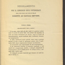 | Alternative Title | Regolamento del consorzio dei canali Sevese : compilato in base al regolamento approvato dal già governo di Lombardia, con decreto 18 settembre 1836 e modificato nell'anno 1872, a tenore della legge sui lavori pubblici, 20 marzo 1865. |
