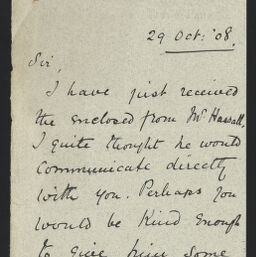 | Title | Letter from Miss J.R. Aikman to Grant Richards, October 29, 1908 |
